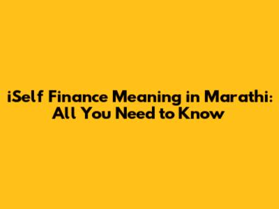 iSelf Finance in Marathi: स्व-वित्त म्हणजे काय?