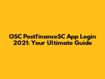 OSC PostfinanceSC App Login 2021: A Comprehensive Guide