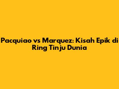 Pertarungan tinju dunia Pacquiao vs Marquez adalah salah satu rivalitas paling ikonik dan mendebarkan dalam sejarah olahraga tinju. Empat kali mereka bertemu di atas ring, menghasilkan drama, kejutan, dan momen-momen yang tak terlupakan. Mari kita selami lebih dalam tentang sejarah, analisis, dan dampak dari pertarungan epik ini yang telah memukau jutaan penggemar di seluruh dunia.