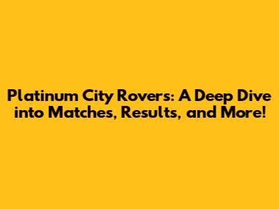 Platinum City Rovers: Matches, Results, And More!