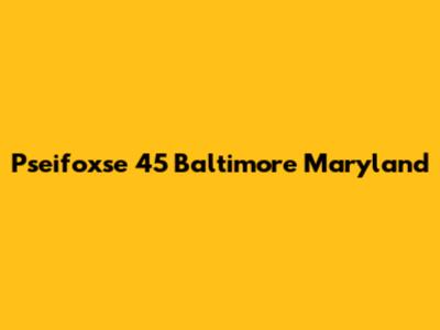 Pseifoxse 45 Baltimore Maryland: Info & Updates