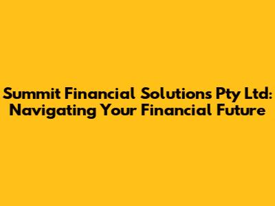 Hey guys! Let's dive into Summit Financial Solutions Pty Ltd, a name you might have stumbled upon while searching for help with your financial planning. Whether you're mapping out your retirement, trying to get a handle on your investments, or just need some solid financial advice, understanding who you’re dealing with is super important. This article will give you a comprehensive look at what Summit Financial Solutions offers, their reputation, and how they can potentially help you achieve your financial goals. Think of this as your friendly guide to making informed decisions about your financial future. Let's get started!